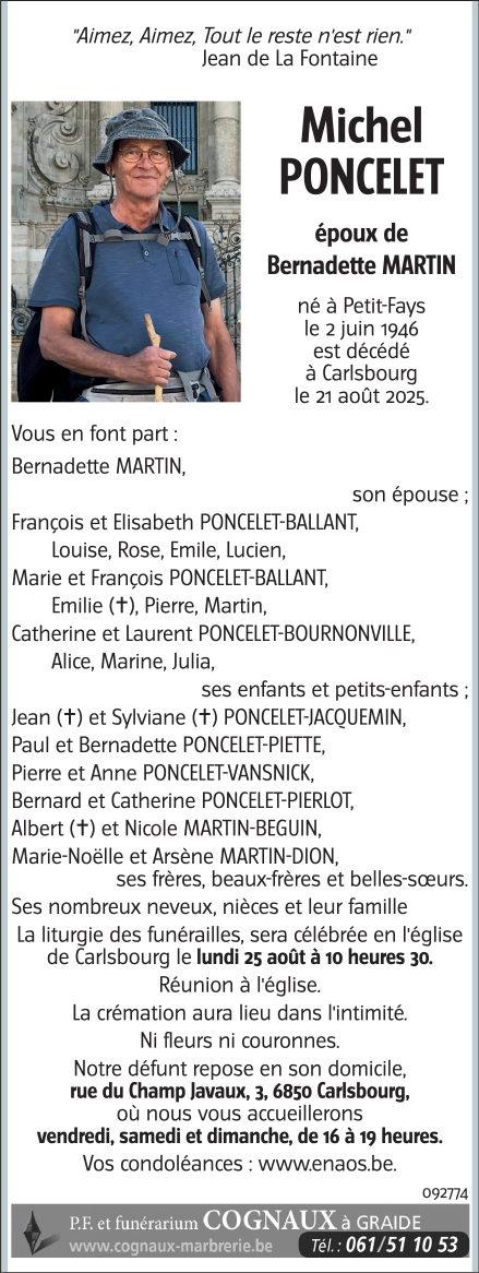 Fallecido en Carlsbourg (6850, Bélgica) el jueves, 21 de agosto de 2025 a la edad de 79 años