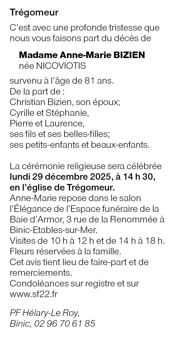Madame Anne-Marie BIZIEN née NICOVIOTIS