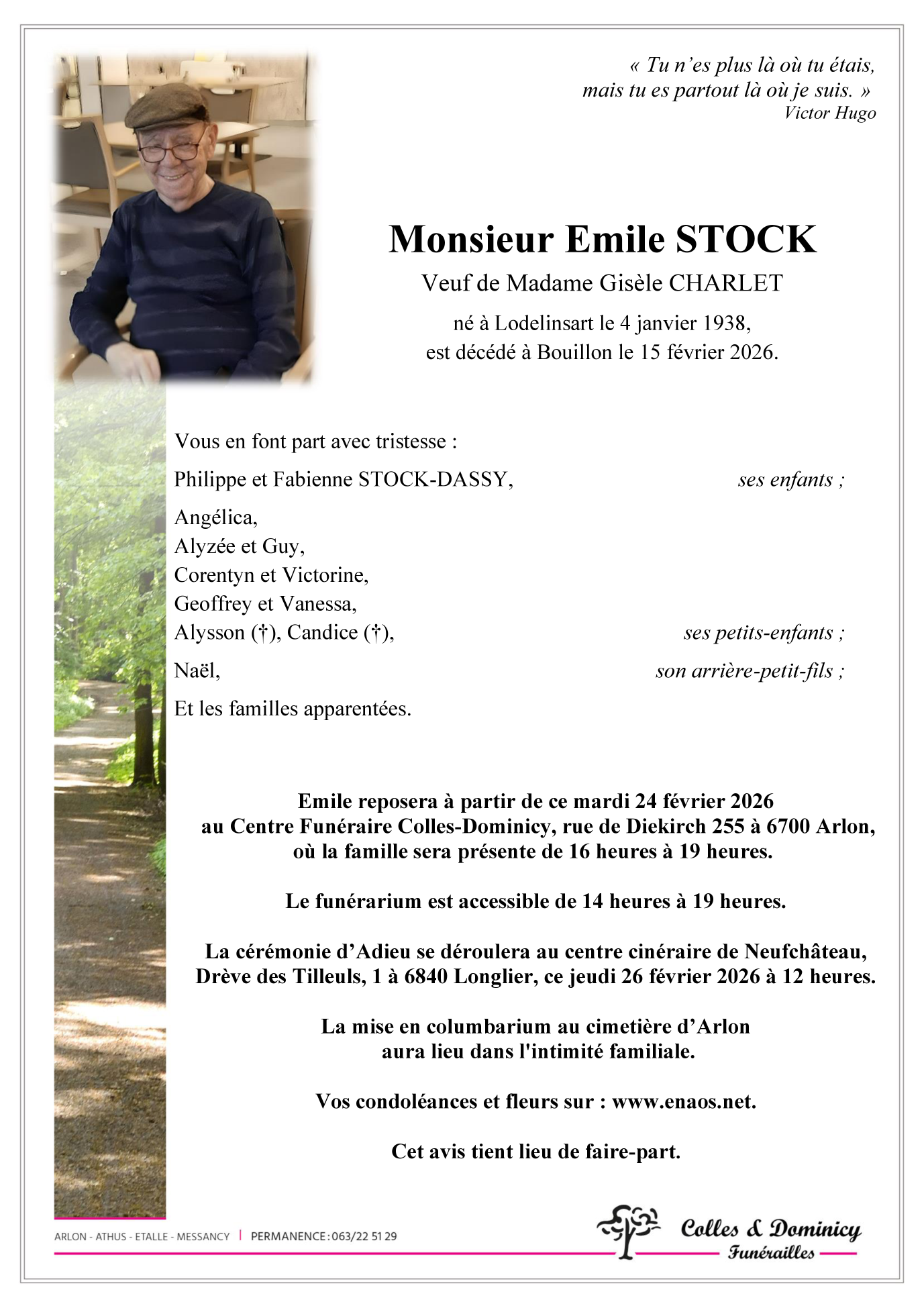 Overleden te Bouillon (6830, België) op zondag 15 februari 2026 op 88-jarige leeftijd
