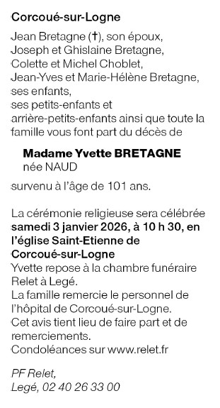 Fallecida en Corcoué-sur-Logne (44650) el martes, 30 de diciembre de 2025 a la edad de 101 años