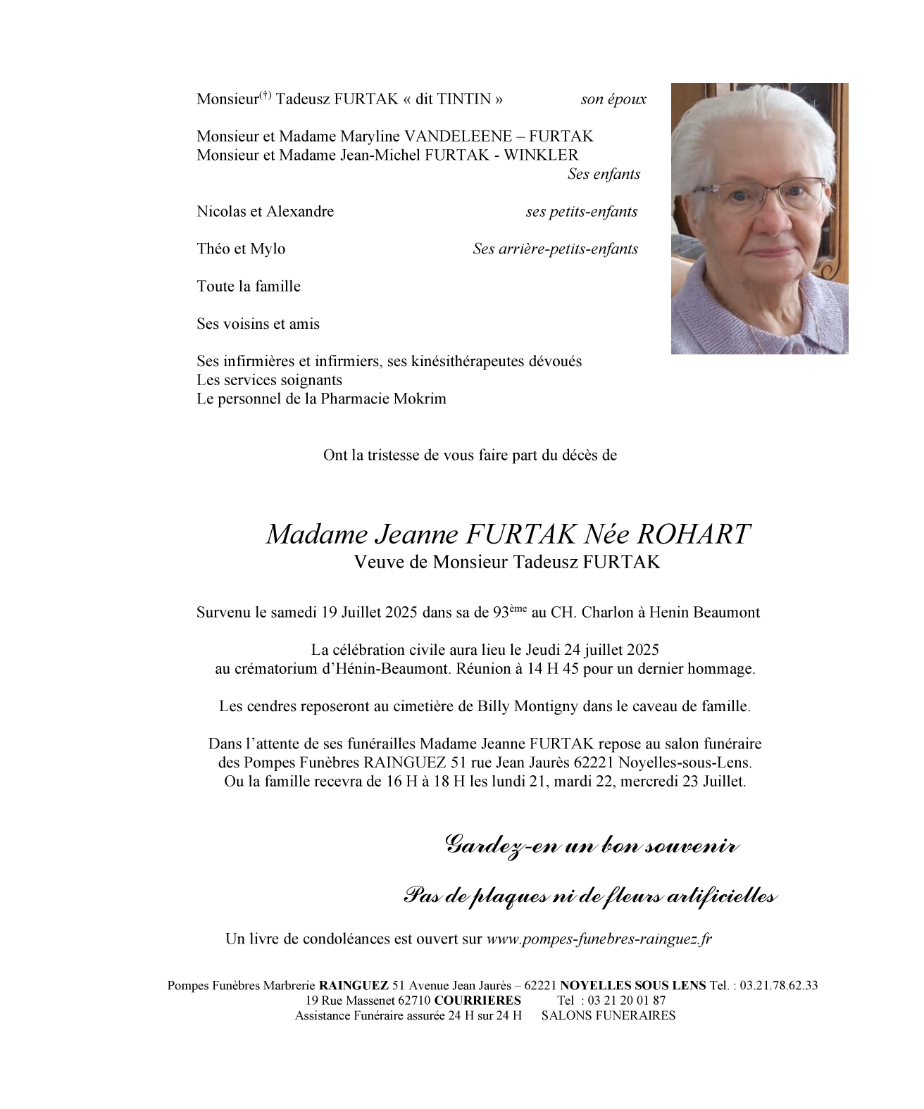 Veuve de Monsieur Tadeusz FURTAK
