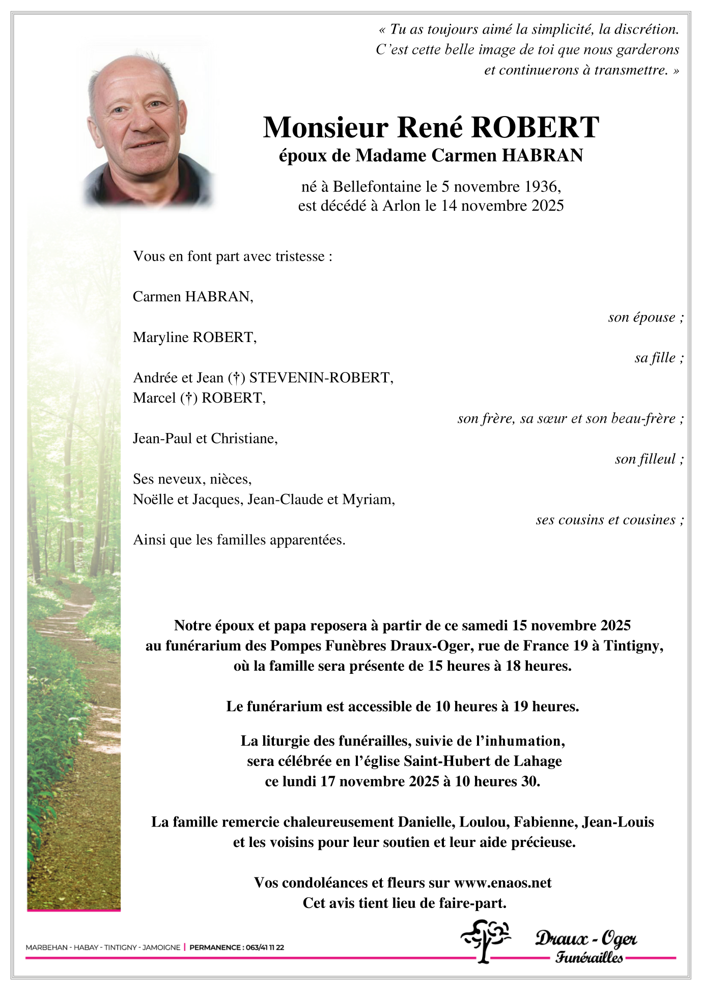Décédé à Arlon (6700, Belgique) le vendredi 14 novembre 2025 à l'âge de 89 ans