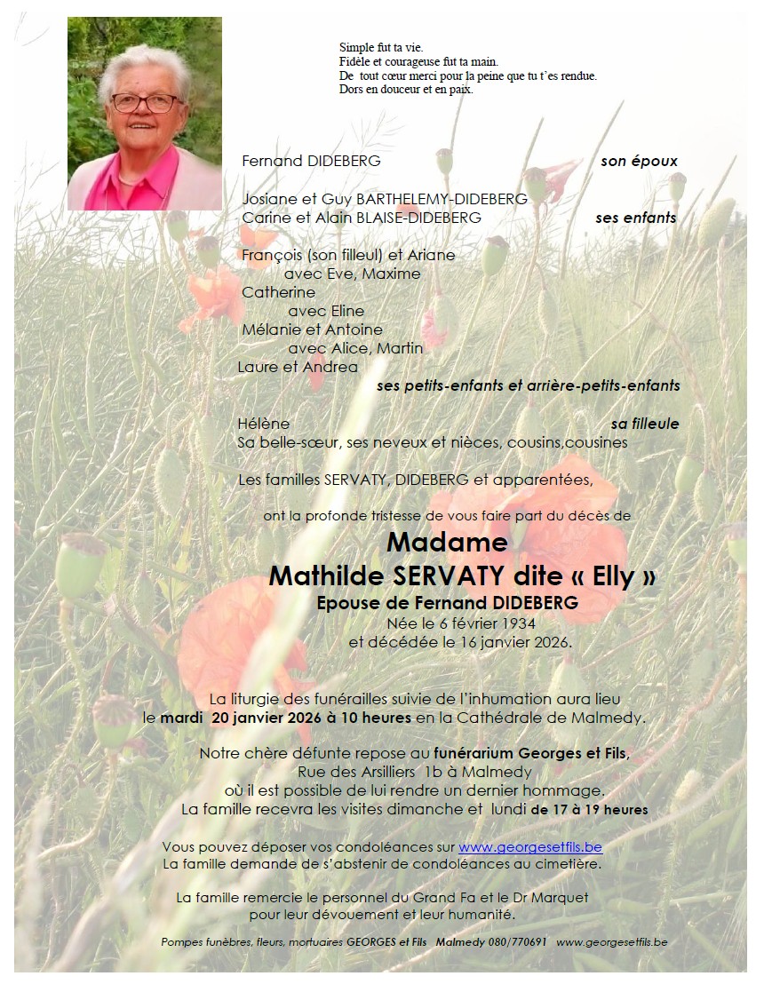 Overleden te Malmedy (4960, België) op vrijdag 16 januari 2026 op 91-jarige leeftijd