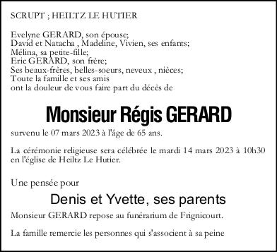 Died in Scrupt (51340) on 07 March 2023 at the age of 65 years