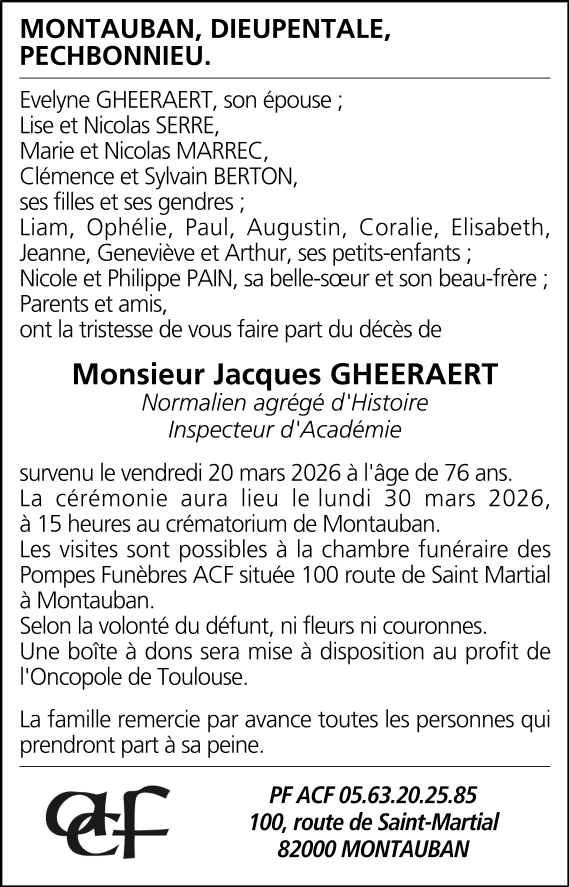 Died in Toulouse (31300) on 20 March 2026 at the age of 76 years