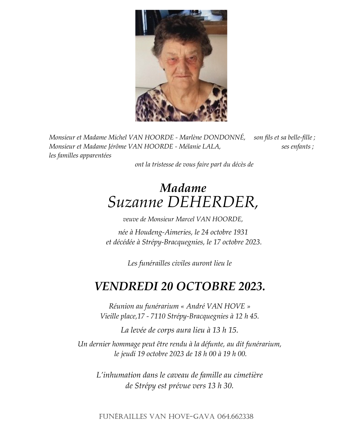 Madame Suzanne DEHERDER