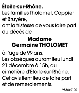Overleden te Valence (26000) op dinsdag 15 december 2020 op 99-jarige leeftijd