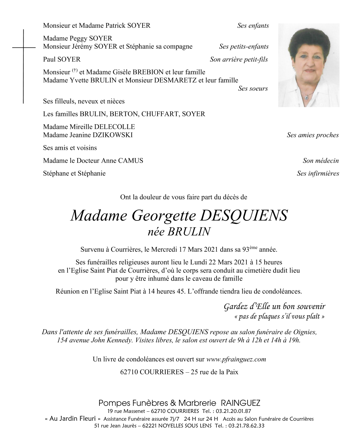 Veuve de Monsieur Marcel DESQUIENS