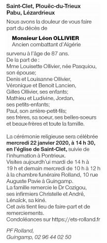 Fallecido en Saint-Clet (22260) el lunes, 20 de enero de 2020 a la edad de 87 años