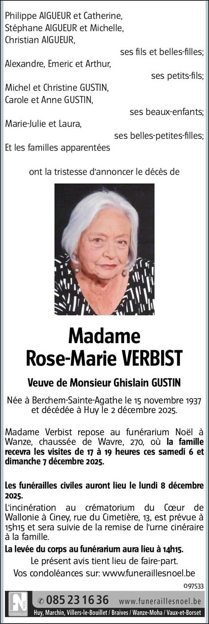 Décédée à Huy (4500, Belgique) le mardi 2 décembre 2025 à l'âge de 88 ans