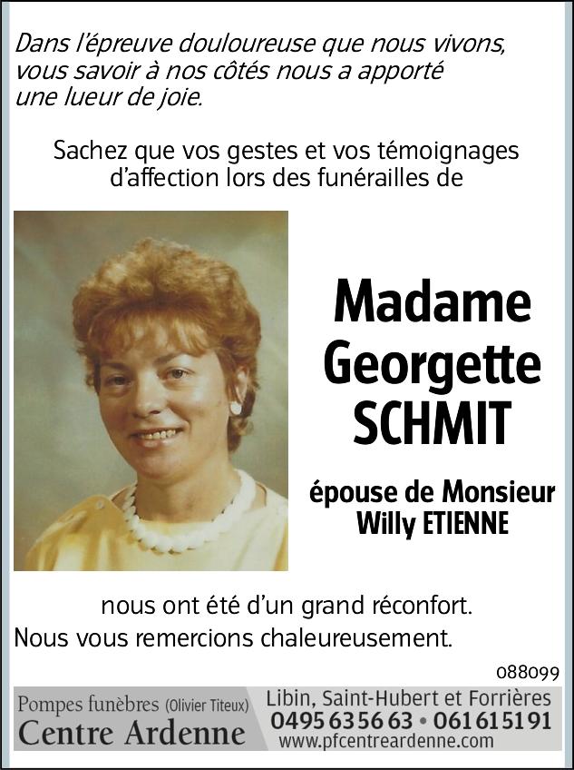 Madame Georgette SCHMIT épouse de Monsieur Willy ETIENNE
