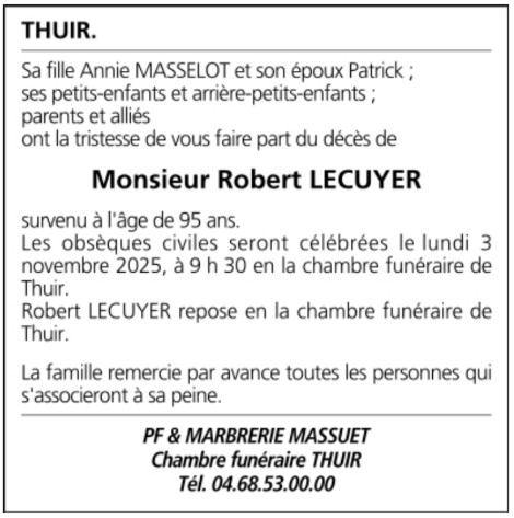 Décédé à Cabestany (66330) le jeudi 30 octobre 2025 à l'âge de 95 ans