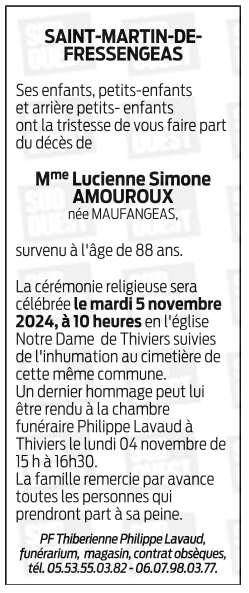 Madame Lucienne Simone AMOUROUX née MAUFANGEAS