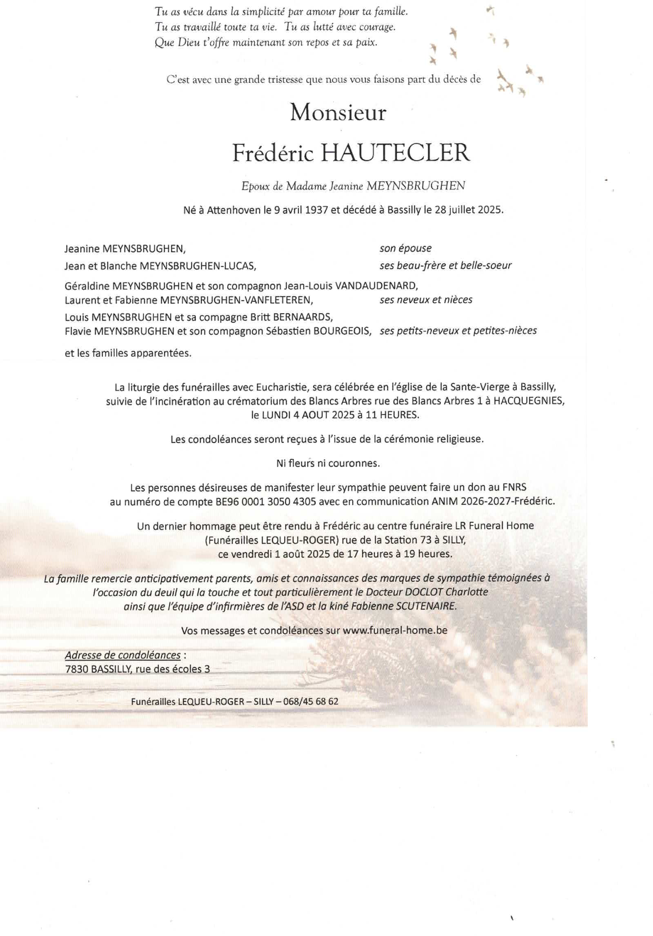 Décédé à Bassilly (7830, Belgique) le lundi 28 juillet 2025 à l'âge de 88 ans