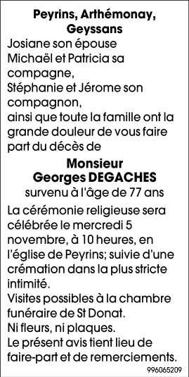 Décédé à Romans-sur-Isère (26100) le jeudi 30 octobre 2025 à l'âge de 77 ans