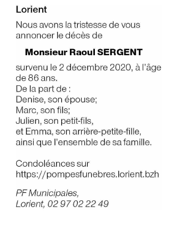 Overleden te Lorient (56100) op woensdag 2 december 2020 op 86-jarige leeftijd
