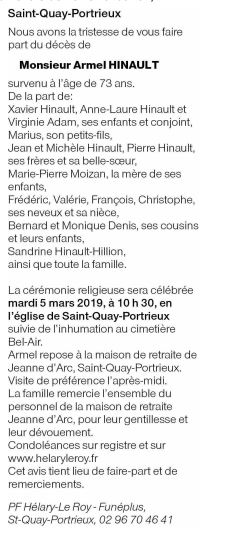 Fallecido en Saint-Quay-Portrieux (22410) el viernes, 1 de marzo de 2019 a la edad de 73 años