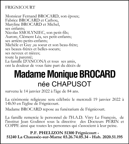 Madame Monique BROCARD née CHAPUSOT