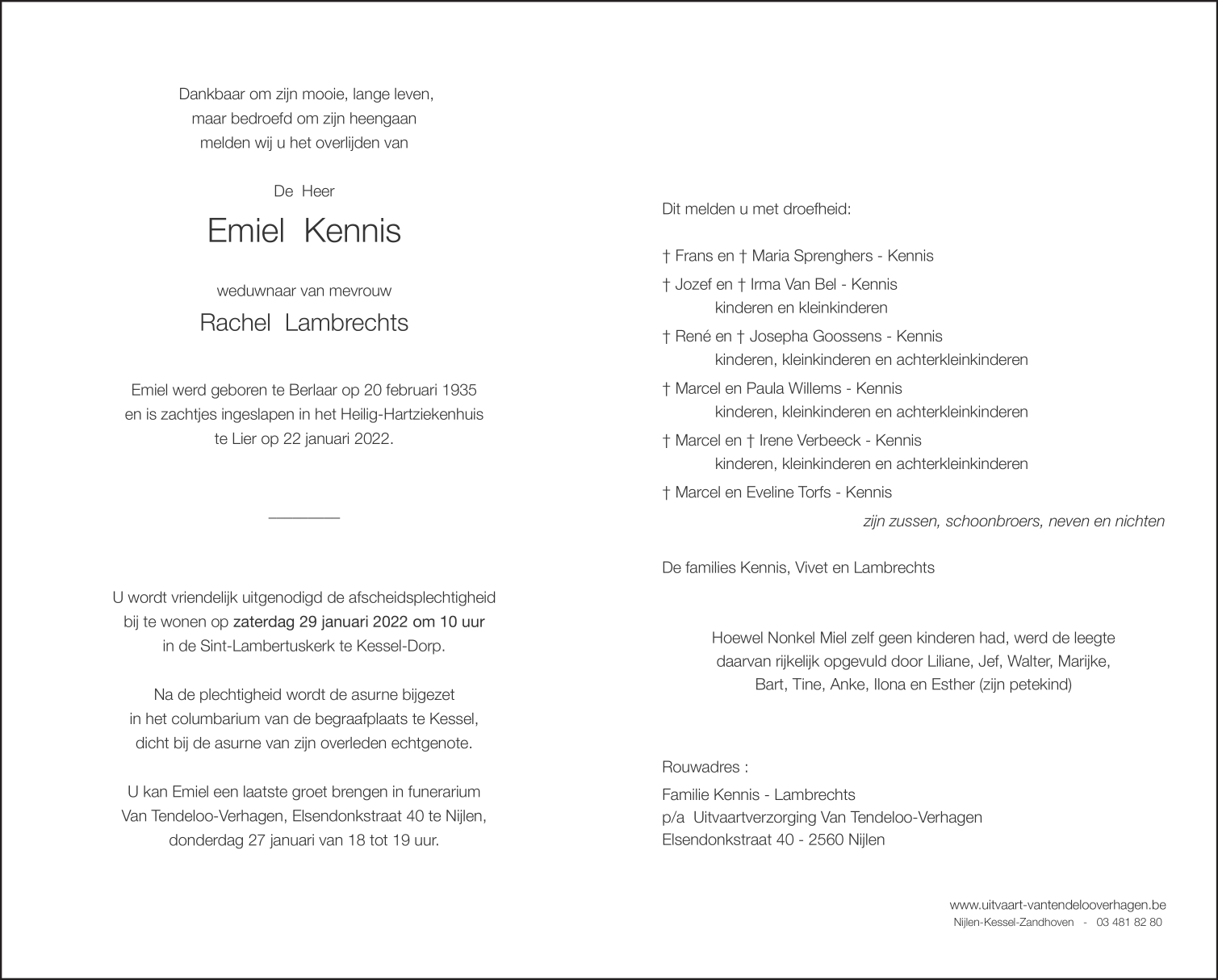 Décédé à Lier (2500, Belgique) le samedi 22 janvier 2022 à l'âge de 86 ans