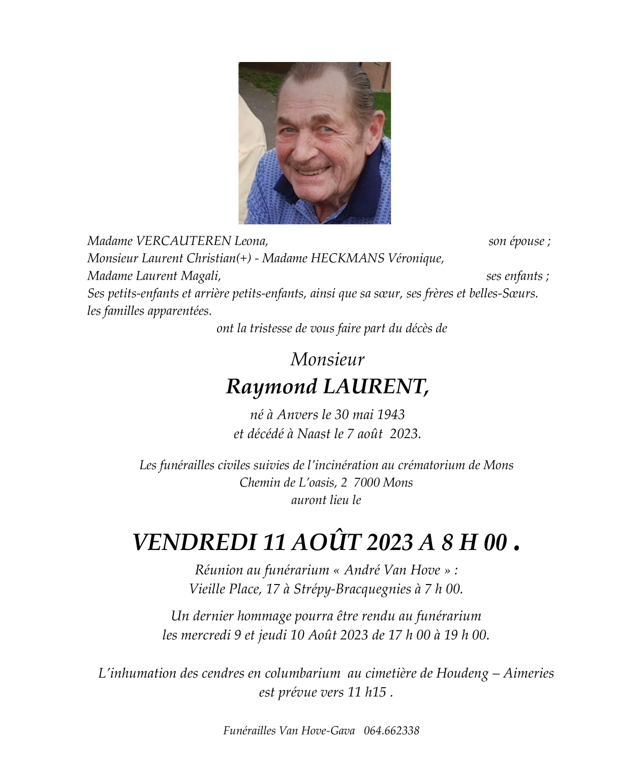 Fallecido en Naast (7062, Bélgica) el lunes, 7 de agosto de 2023 a la edad de 80 años