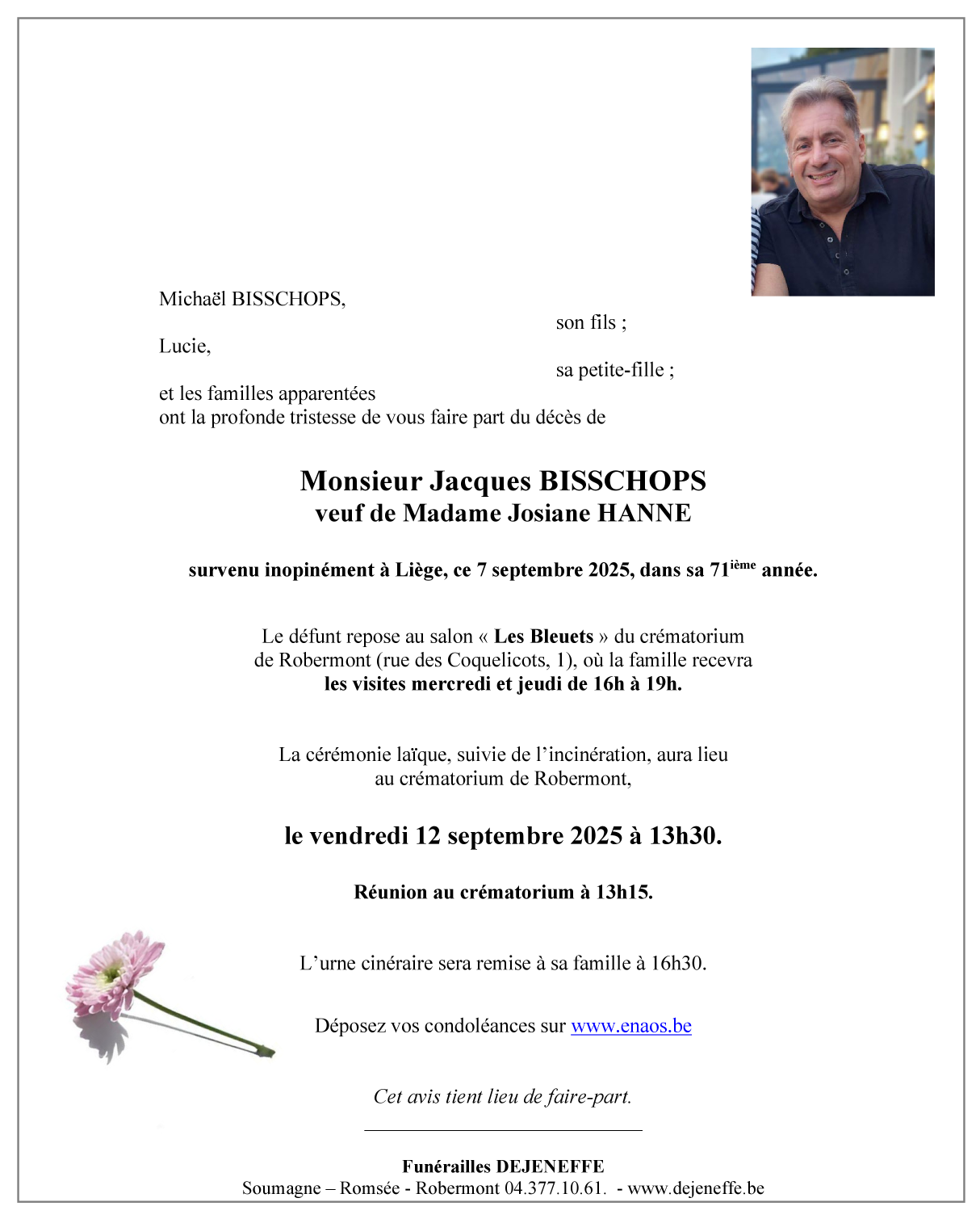 Décédé à Liège (4000, Belgique) le dimanche 7 septembre 2025 à l'âge de 70 ans