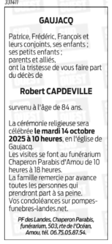 Fallecido en Gaujacq (40330) el jueves, 9 de octubre de 2025 a la edad de 84 años