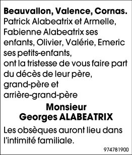 Veuf de Madame Solange ALABEATRIX