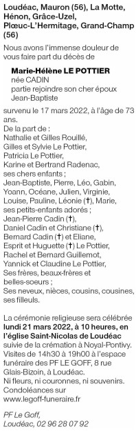 Madame Marie-Hélène LE POTTIER née CADIN