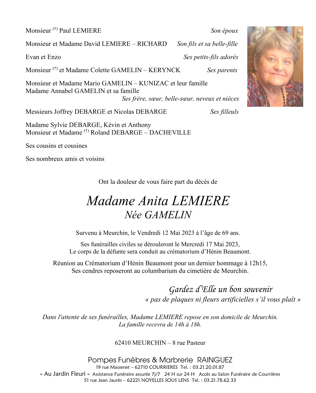 Madame Anita LEMIERE née GAMELIN