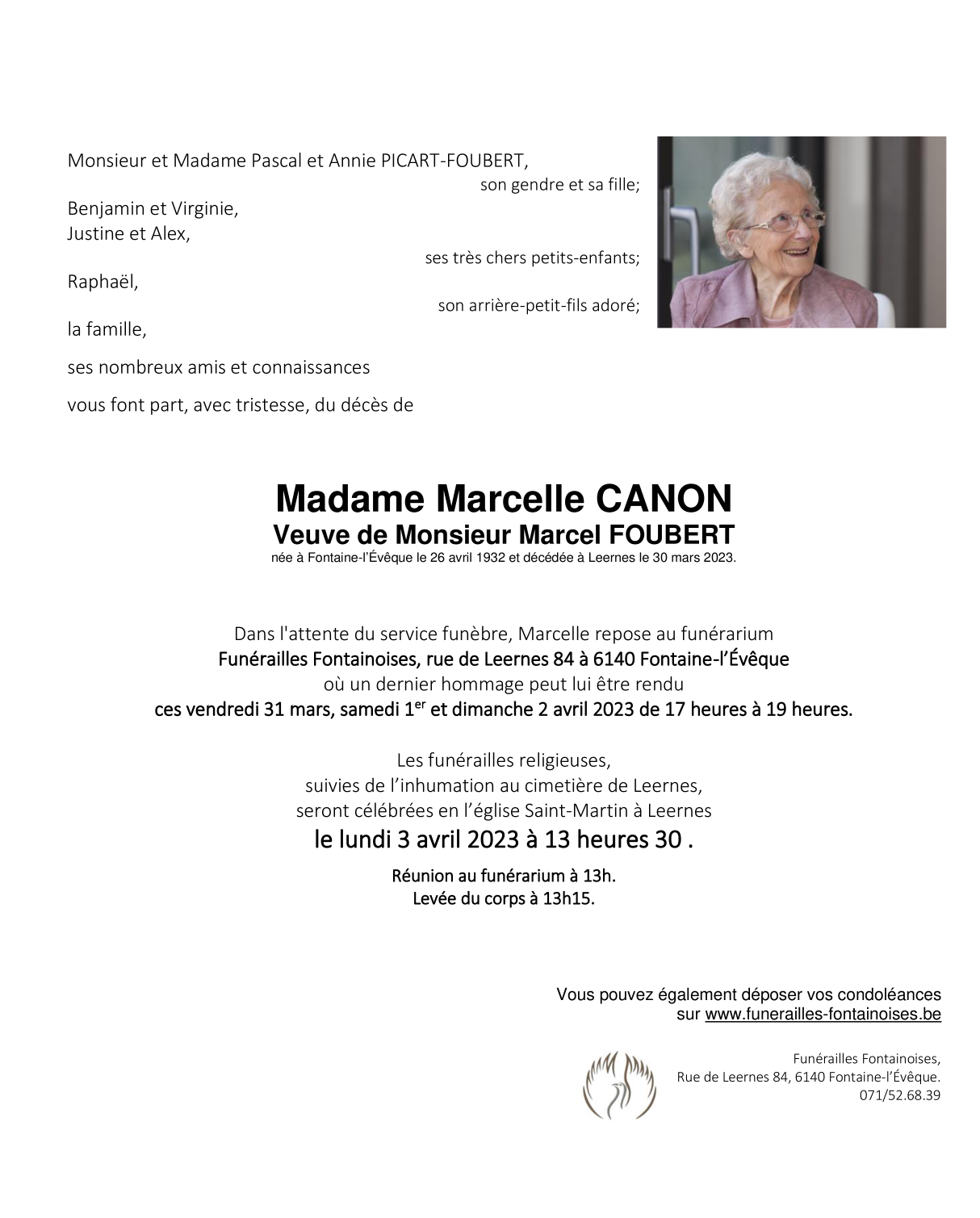 Widow of Monsieur Marcel FOUBERT