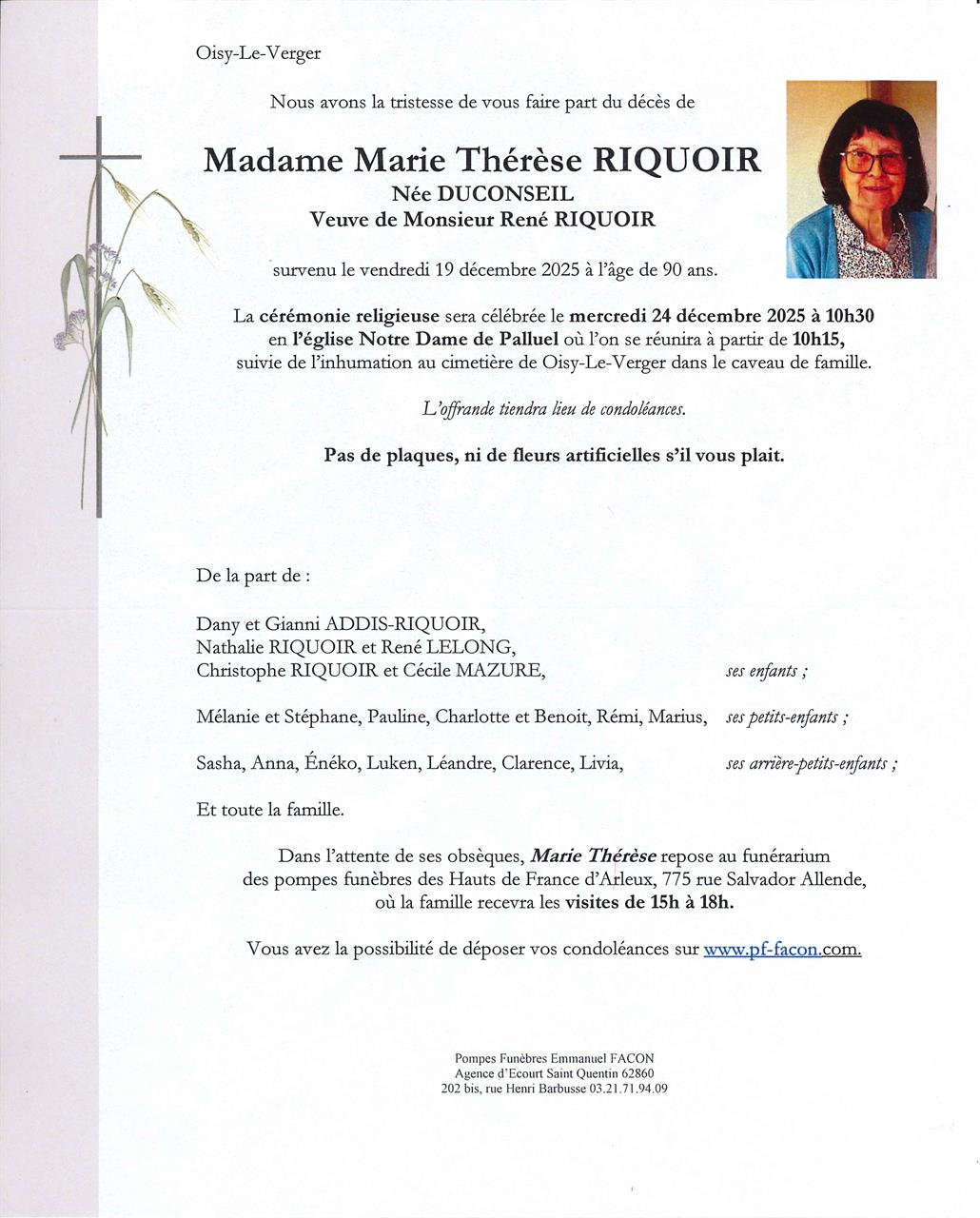 Madame Marie Thérèse RIQUOIR née DUCONSEIL