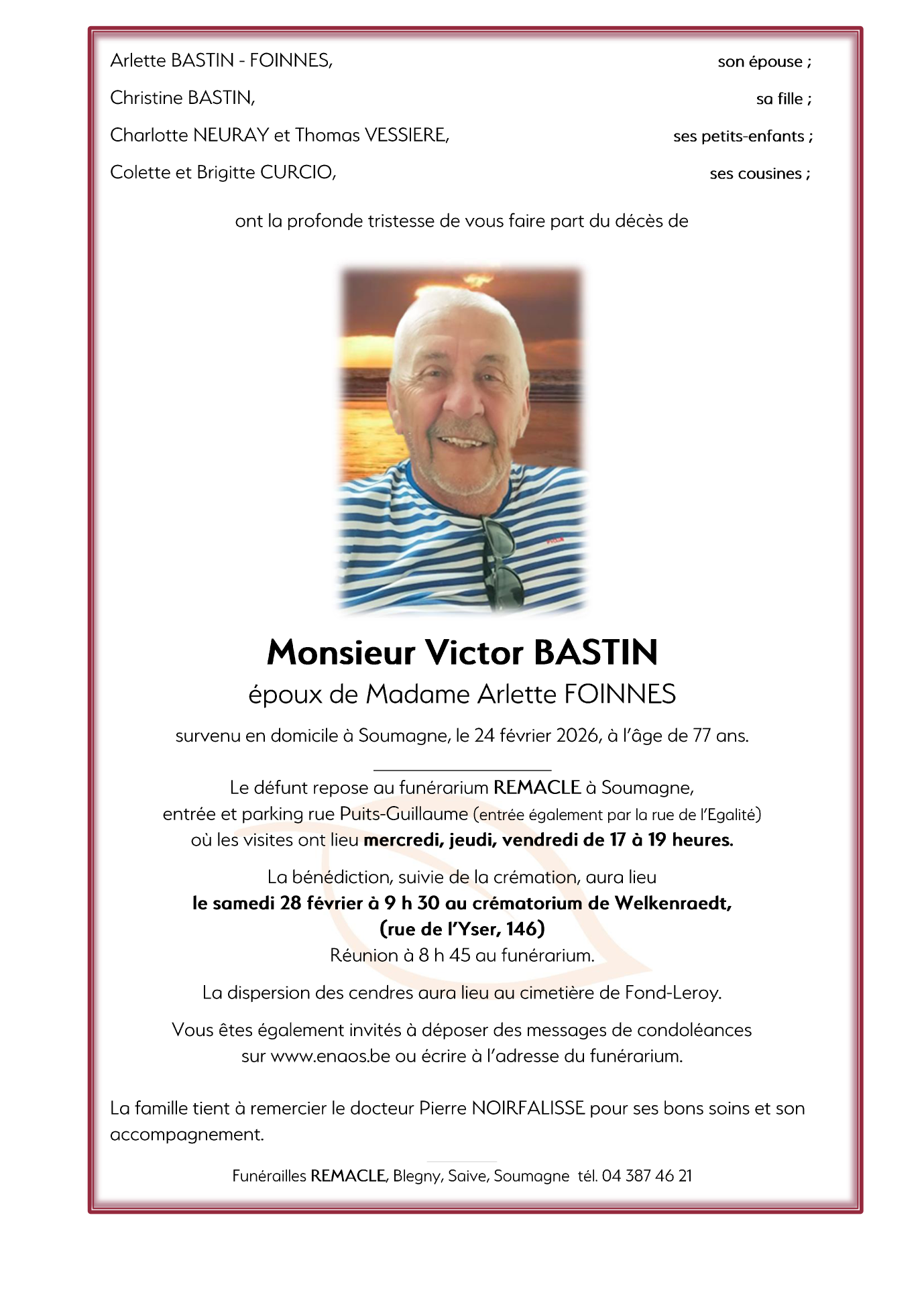 Décédé à Soumagne (4630, Belgique) le mardi 24 février 2026 à l'âge de 77 ans