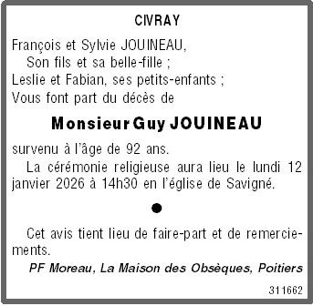 Died in Poitiers (86000) on 06 January 2026 at the age of 92 years