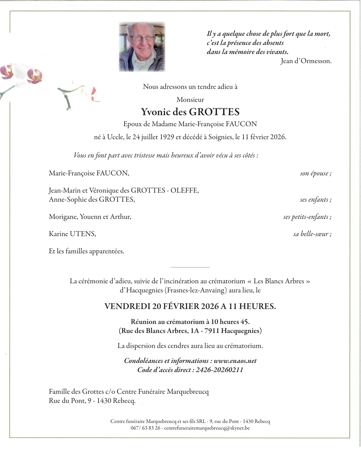 Décédé à Soignies (7060, Belgique) le mercredi 11 février 2026 à l'âge de 96 ans