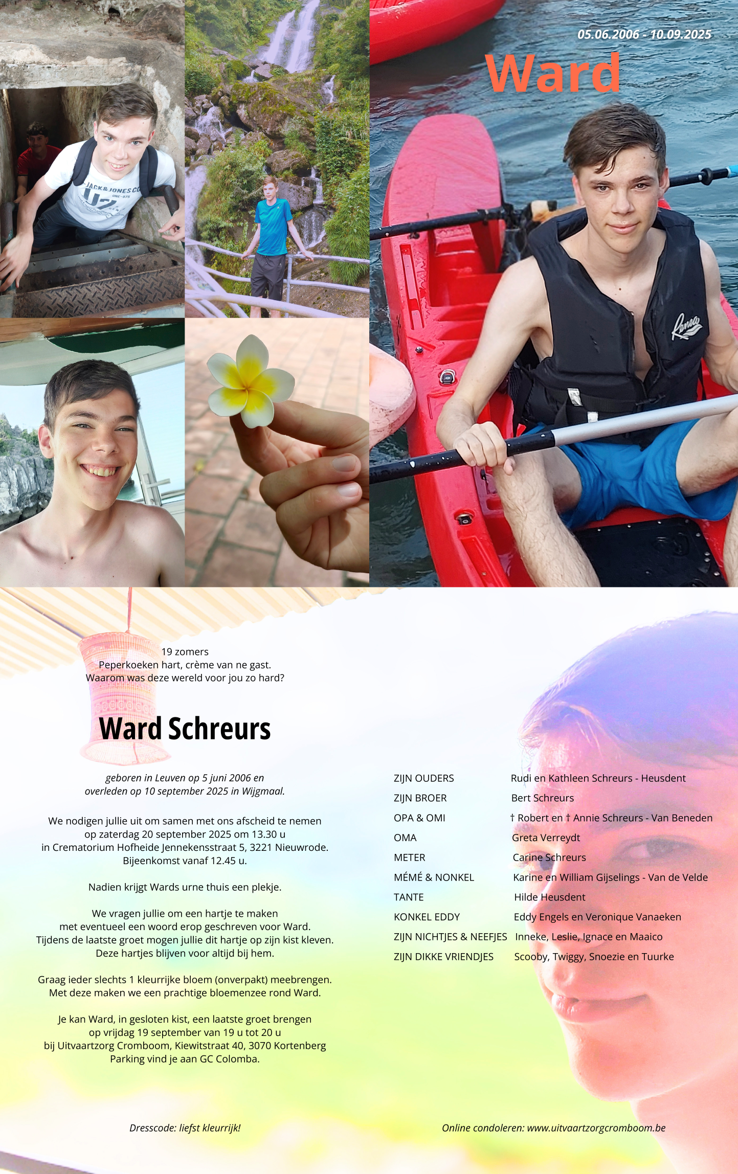 Décédé à Wijgmaal (Brabant) (3018, Belgique) le mercredi 10 septembre 2025 à l'âge de 19 ans