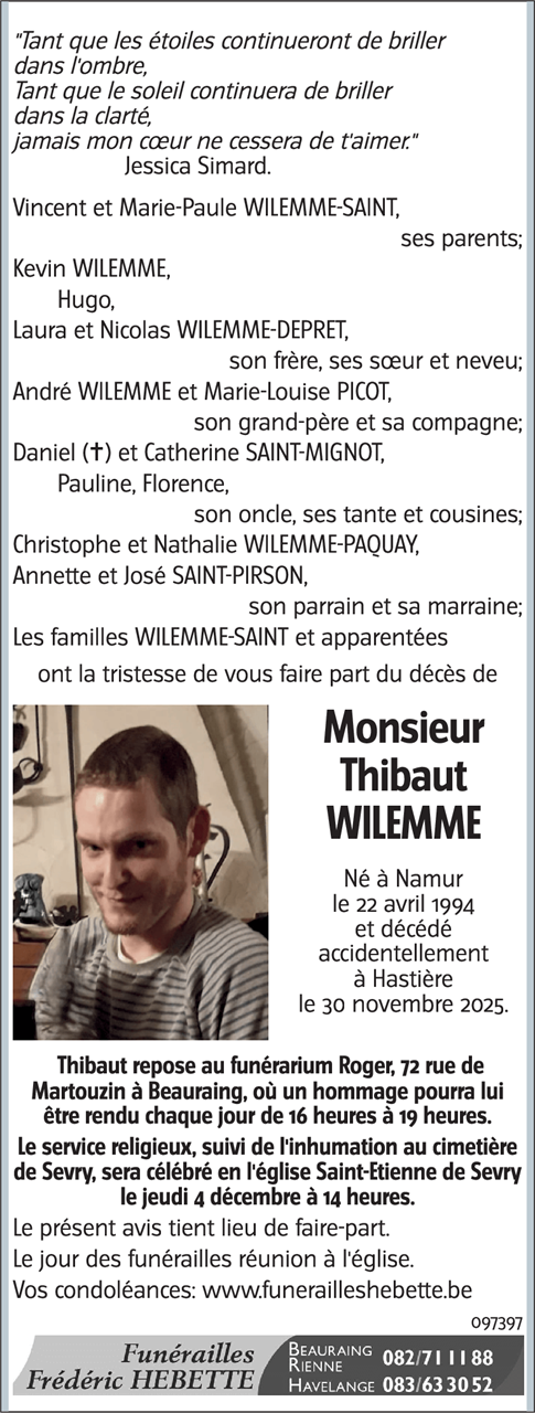 Died in Hastière (5540, Belgium) on 30 November 2025 at the age of 31 years
