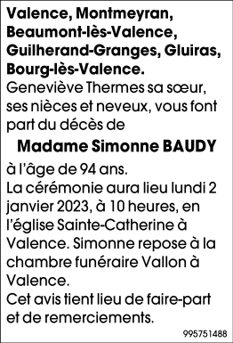 Died in Valence (26000) on 28 December 2022 at the age of 94 years