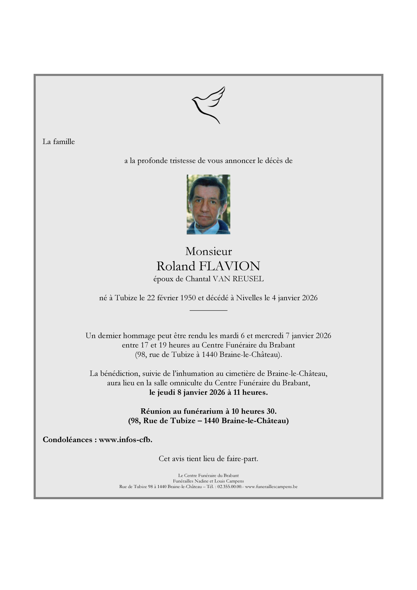 Died in Nivelles (1400, Belgium) on 04 January 2026 at the age of 75 years