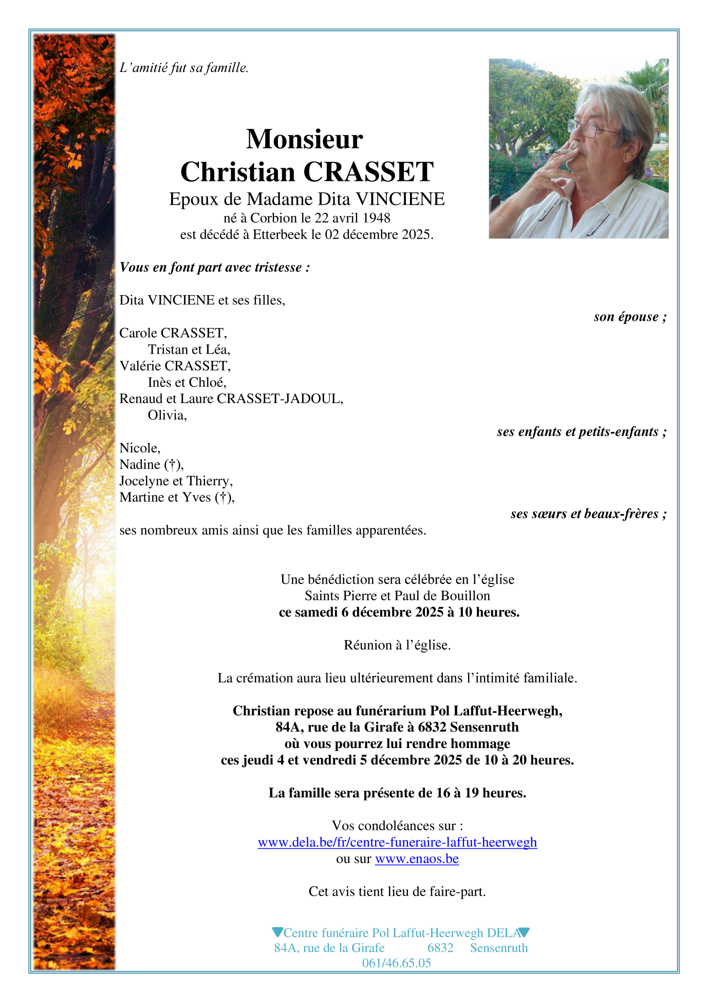Né à Corbion (6838, Belgique) le jeudi 22 avril 1948