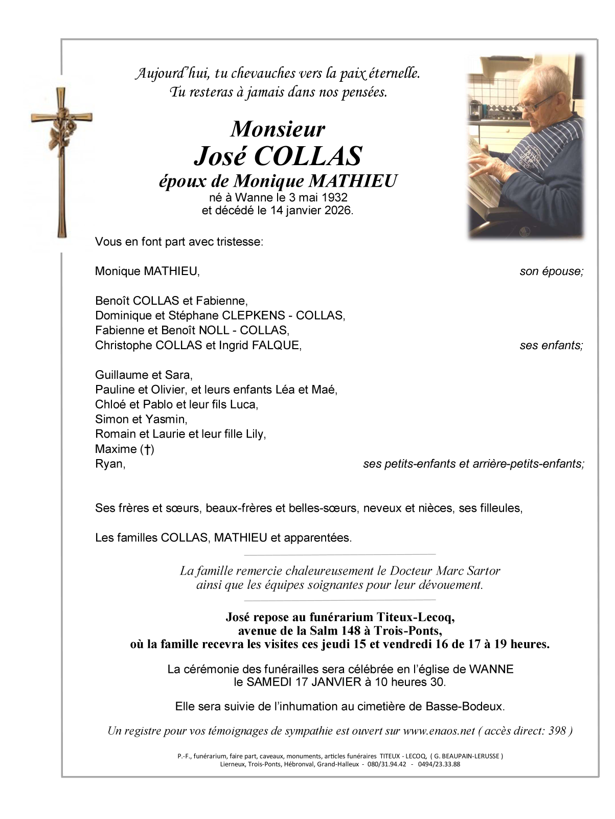 Overleden te Malmedy (4960, België) op woensdag 14 januari 2026 op 93-jarige leeftijd