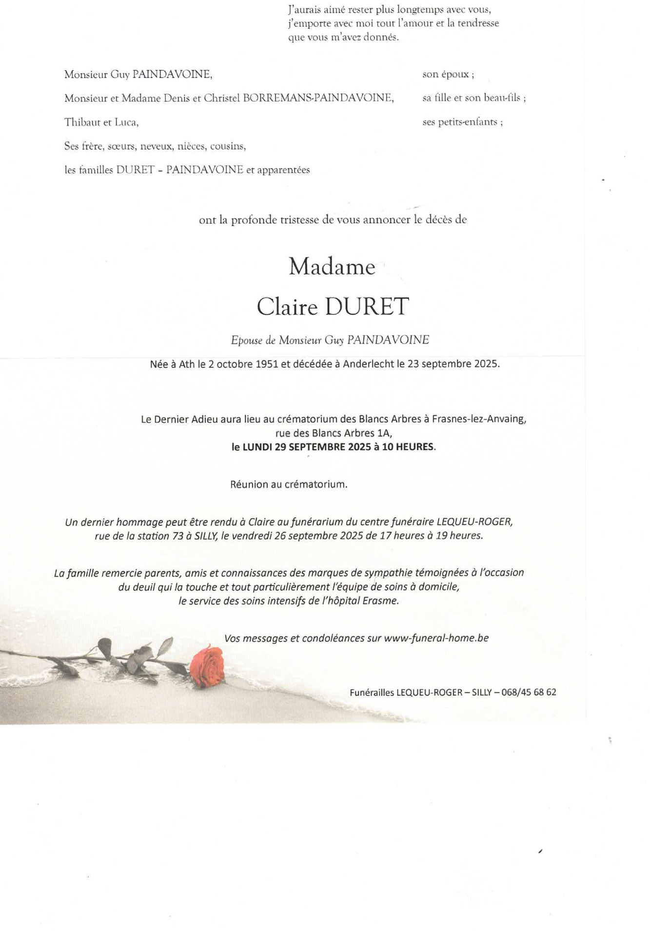 Fallecida en Anderlecht (1070, Bélgica) el martes, 23 de septiembre de 2025 a la edad de 73 años