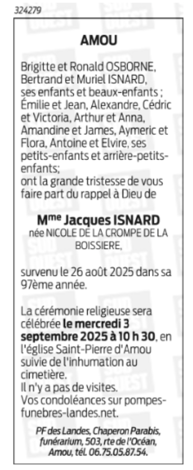 Madame Nicole ISNARD née de La Crompe de La Boissière