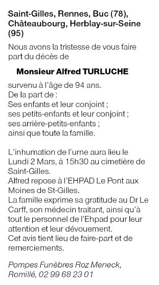 Décédé à Saint-Gilles (35590) le mardi 24 février 2026 à l'âge de 94 ans