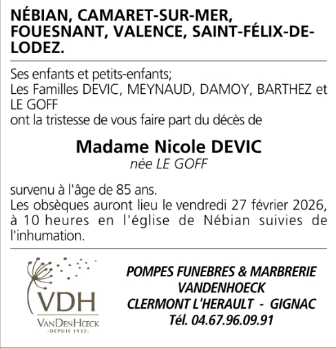 Décédée à Clermont-l'Hérault (34800) le mardi 24 février 2026 à l'âge de 85 ans