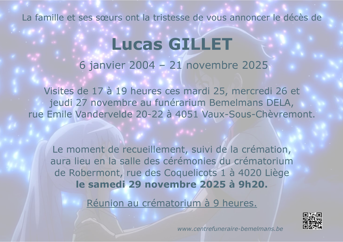 Décédé à Chênée (4032, Belgique) le vendredi 21 novembre 2025 à l'âge de 21 ans