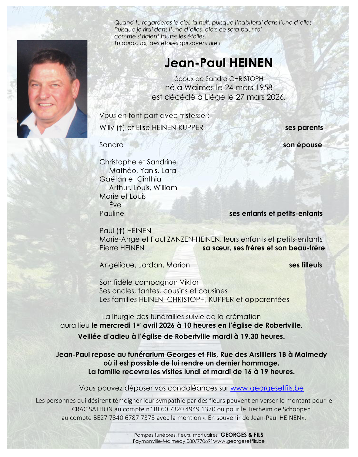 Overleden te Liège (4000, België) op vrijdag 27 maart 2026 op 68-jarige leeftijd