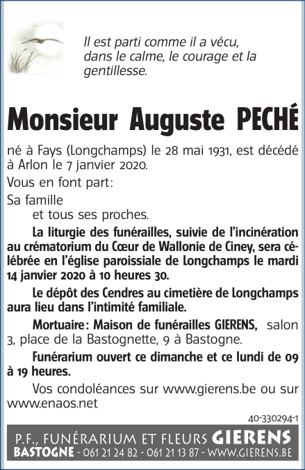 Overleden te Arlon (6700, België) op dinsdag 7 januari 2020 op 88-jarige leeftijd