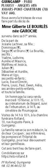 Madame Gilberte LE BOURLÈS geboren GAROCHE