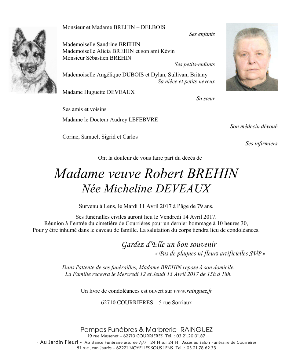 Overleden te Lens (62300) op dinsdag 11 april 2017 op 79-jarige leeftijd