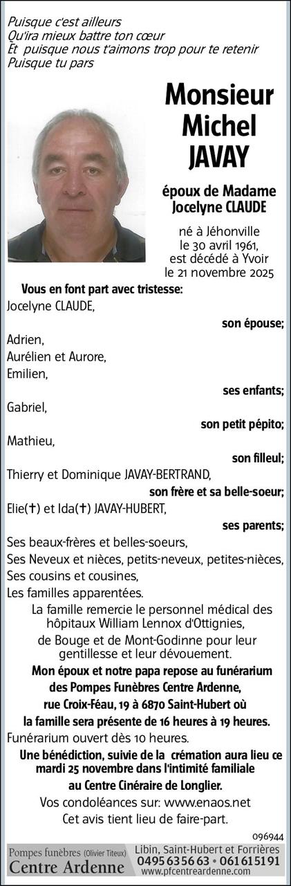 Overleden te Yvoir (5530, België) op vrijdag 21 november 2025 op 64-jarige leeftijd